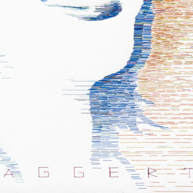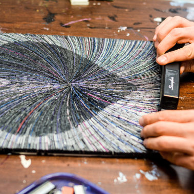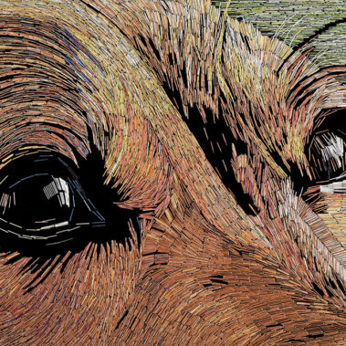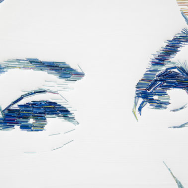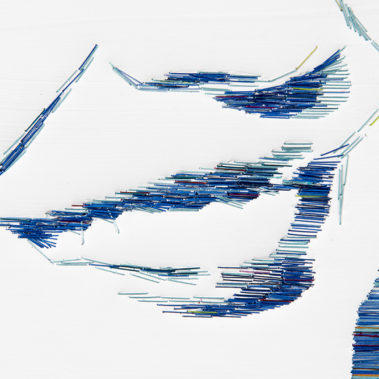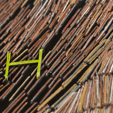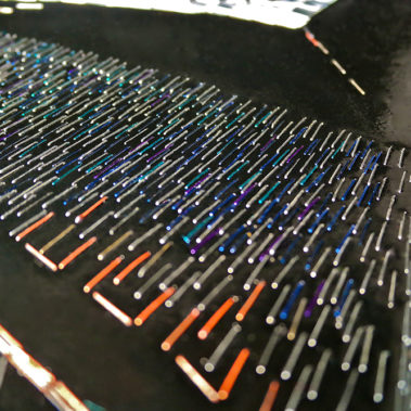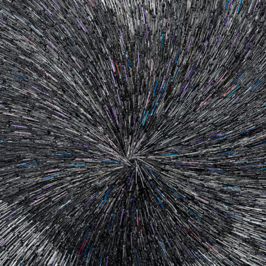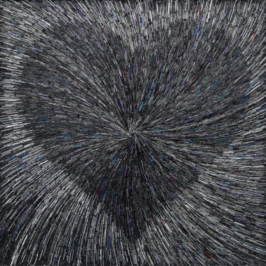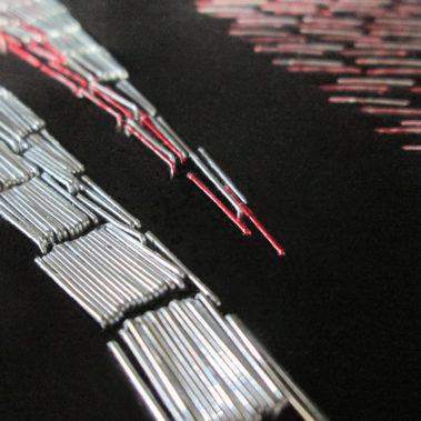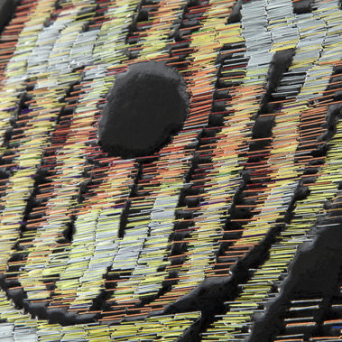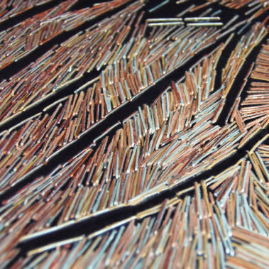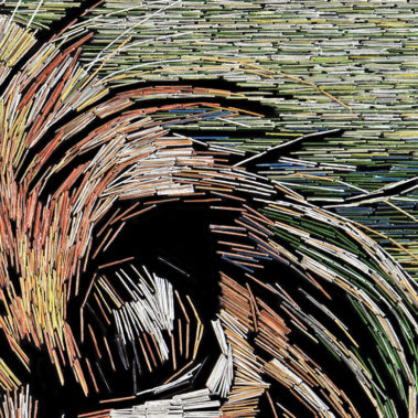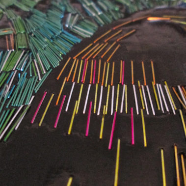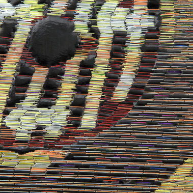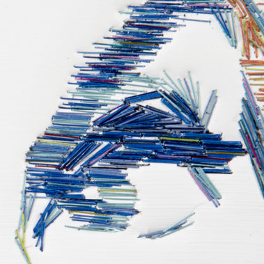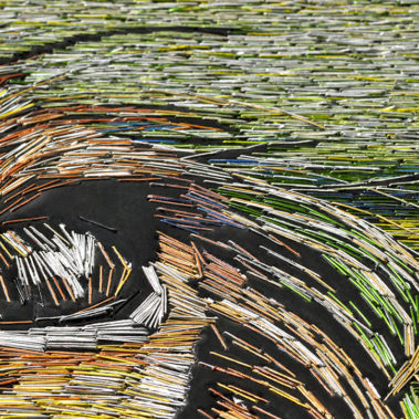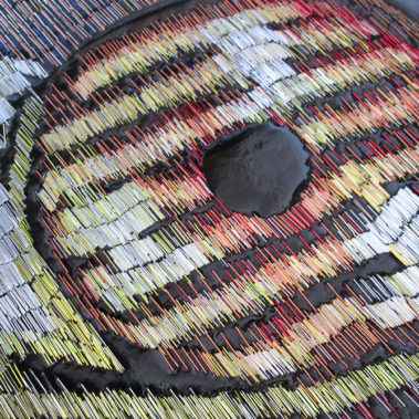 12,352 multi-colored staples on a 25″ x 40″ painted board.